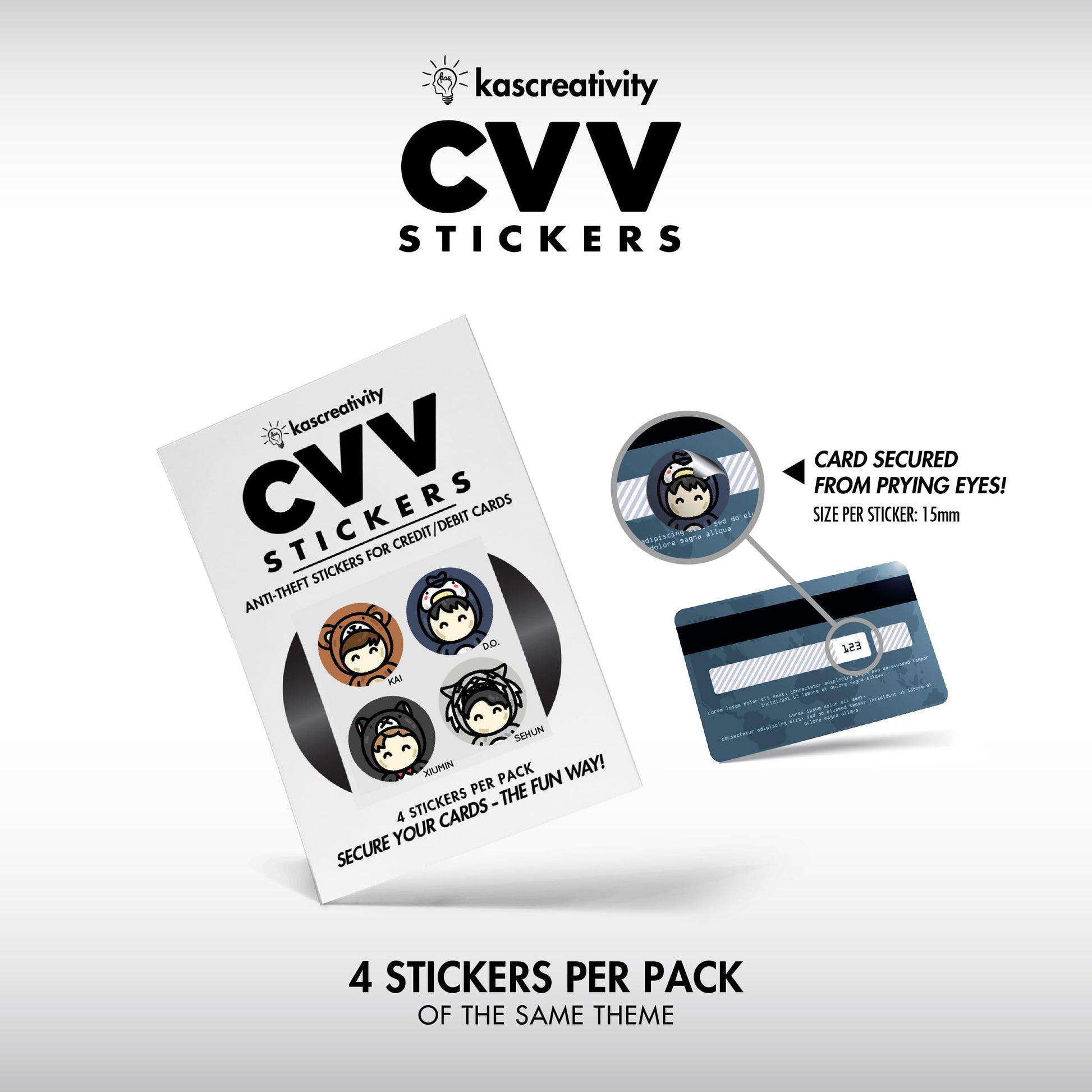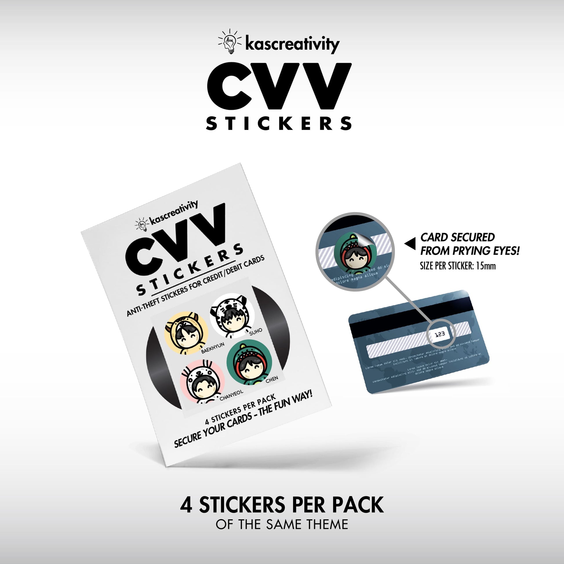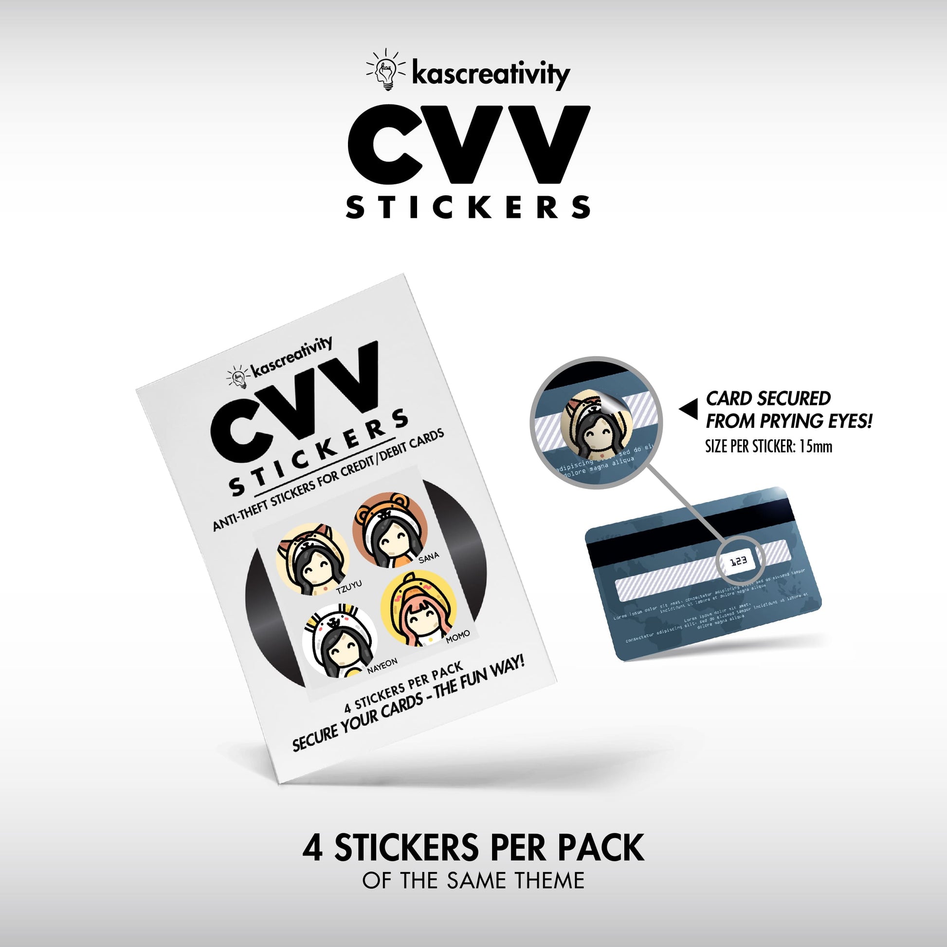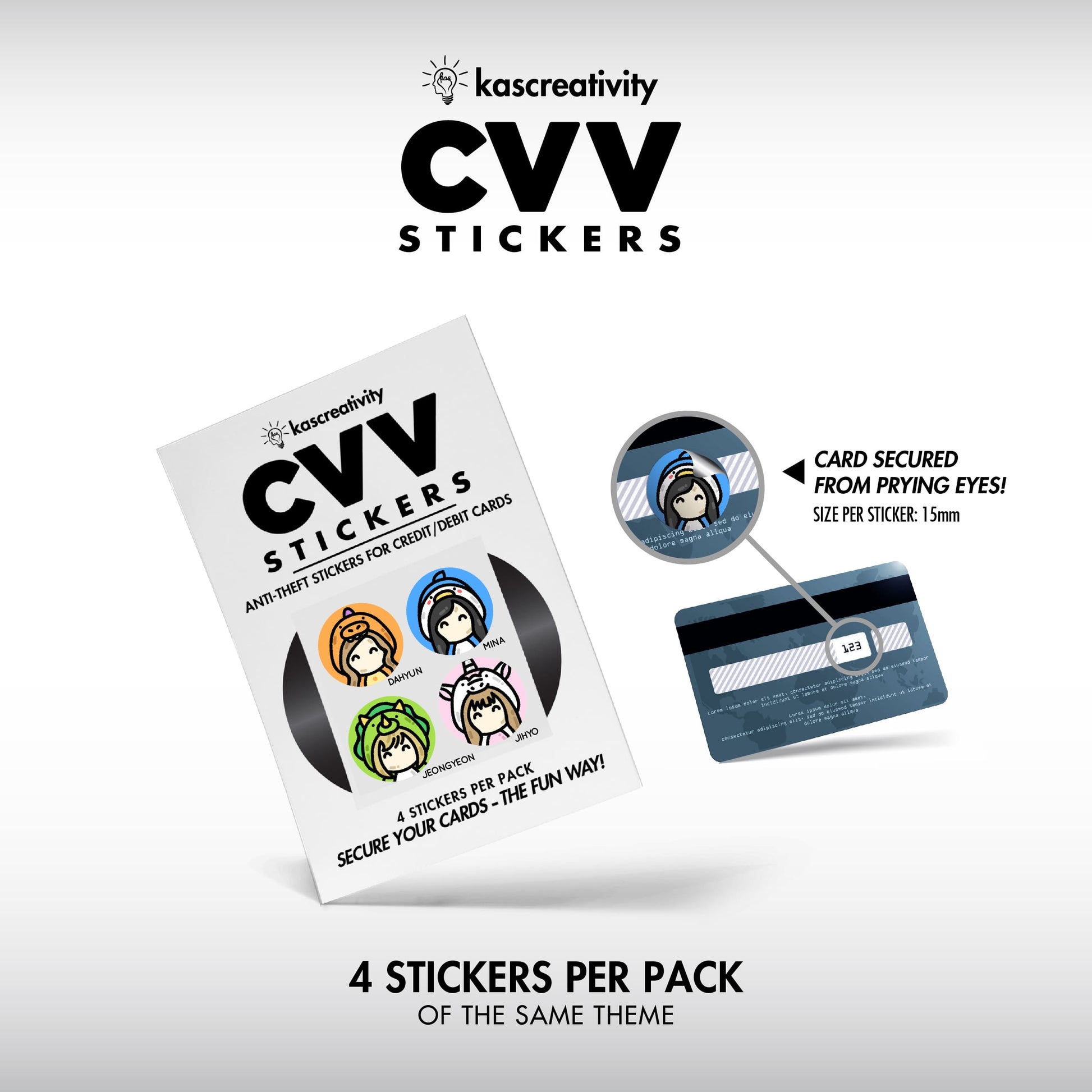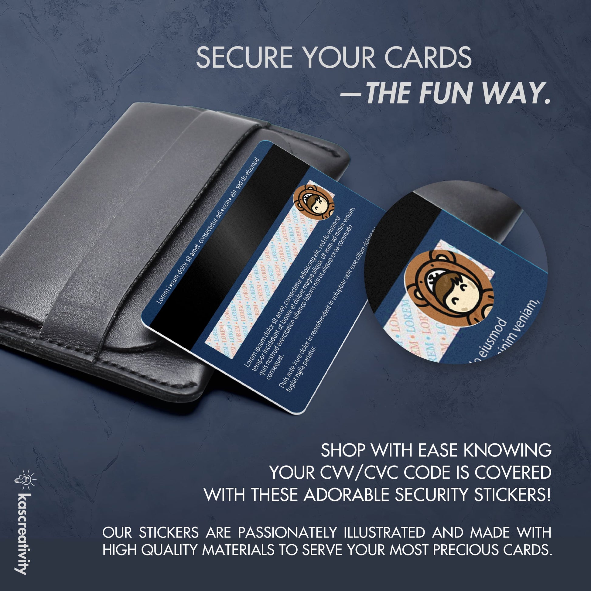 Secure your cards——the FUN way——with our adorably illustrated CVV Stickers!